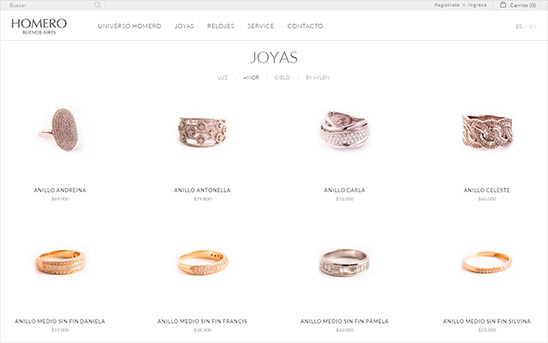 Distinguido por la calidad de sus productos, exclusividad y espíritu artesanal, Homero abrió sus puertas en 1972 ofreciendo alta joyería y relojería, convirtiéndose en una de las casas más importantes de la Argentina, e inaugurando, en 2004, una tienda en pleno corazón de Nueva York. ING fue convocado para diseñar y desarrollar la tienda digital de la marca ofreciendo a los clientes una nueva plataforma de venta. Año: 2015